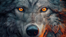 Majestic Wolf Close-Up With Glowing Amber Eyes